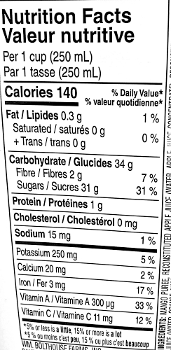 MANGO PUREE, RECONSTITUTED APPLE JUICE (WATER, APPLE JUICE CONCENTRATE), RECONSTITUTED ORANGE JUICE (WATER, ORANGE JUICE CONCENTRATE), RECONSTITUTED LEMON JUICE (WATER, LEMON JUICE CONCENTRATE), BANANA PUREE, NATURAL FLAVOURS, CAROTENE