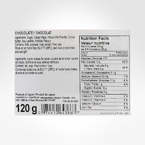 SUGAR, CACAO MASS, WHOLE MILK POWDER, COCOA BUTTER, SOY LECITHIN, ARTIFICIAL FLAVOUR.